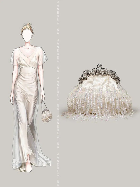 Bolsa Clutch com Franjas em Miçangas Branca