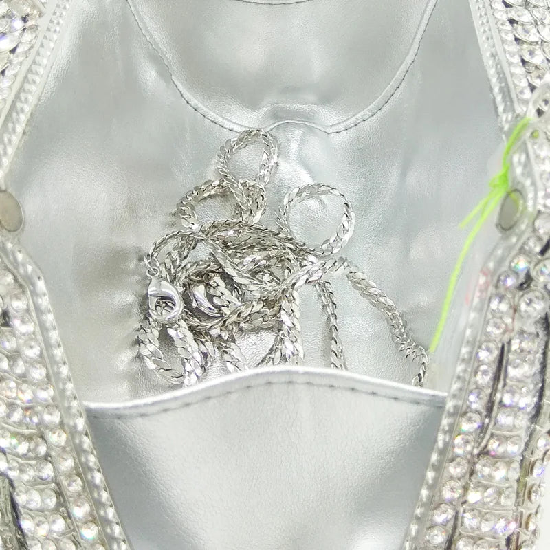 Bolsa Clutch cravejada com strass;