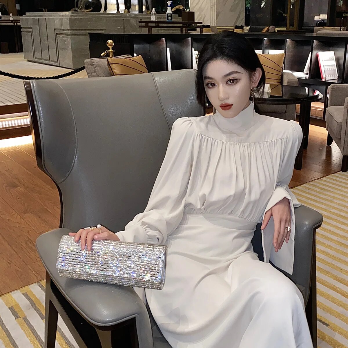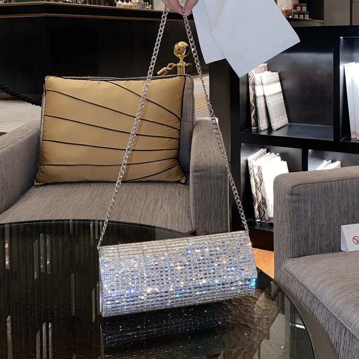 Nossa Clutch de strass é ideal para quem busca adicionar um toque de brilho a uma ocasião especial. Com uma combinação fascinante de brilho, sofisticação e fibras, essa bolsa é o acessório perfeito que pode ajudar a elevar o seu estilo.