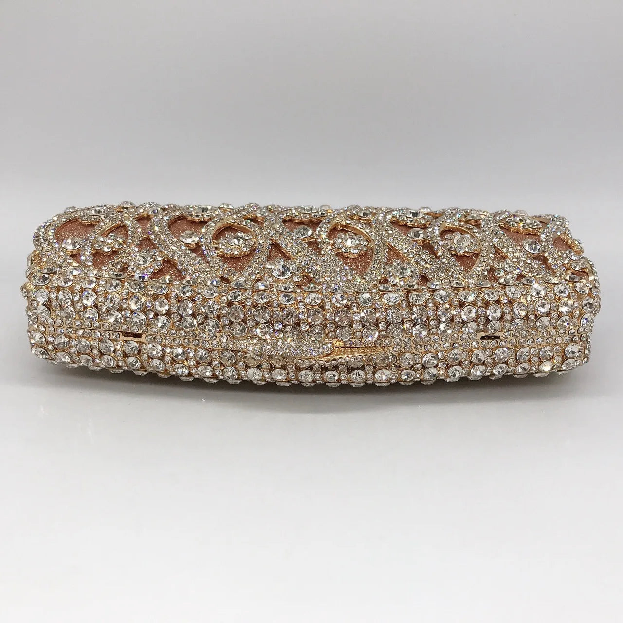 Bolsa Clutch cravejada com strass;